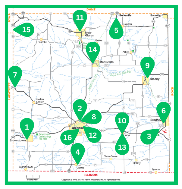 See the map to the left for a visual of where each Green County 4-H club meets.
